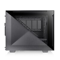 Thermaltake designed a brand-new case series that contains a mixture of open-frame-styled elements and customizable options blending all the functionalities into the Divider Series. The Divider 200 TG is the first Micro-ATX edition to the Divider Series. Just like the other models, the most exceptional feature of the Divider 200 TG is the two symmetrical triangular pieces comprised of a steel panel and a tempered glass window on the left side. These panels are tool-free and easy to remove, offering a clear view of the components inside.