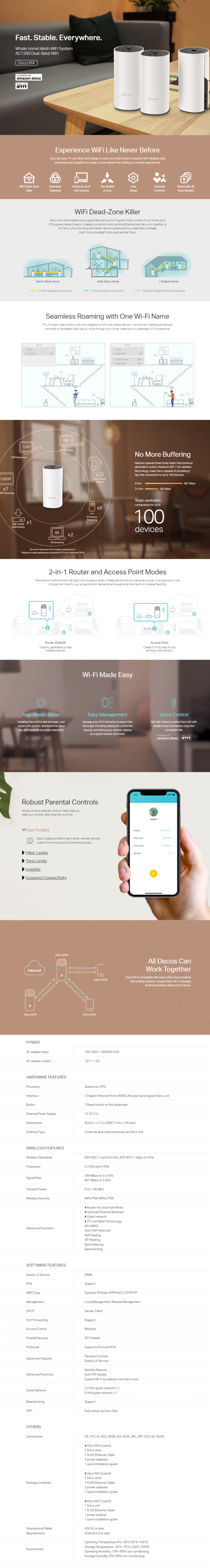 TP-Link Deco M4 AC1200 Whole Home Mesh Wi-Fi Router System - 3 Pack - Overview 1