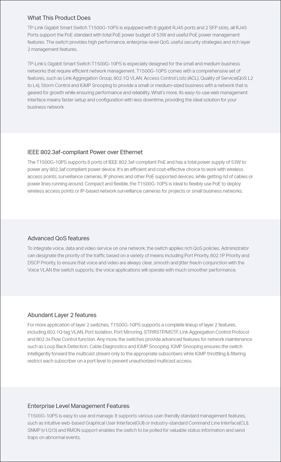 TP-Link TL-SG2210P 8-Port Gigabit Smart PoE Switch with 2 SFP Slots - Overview 2