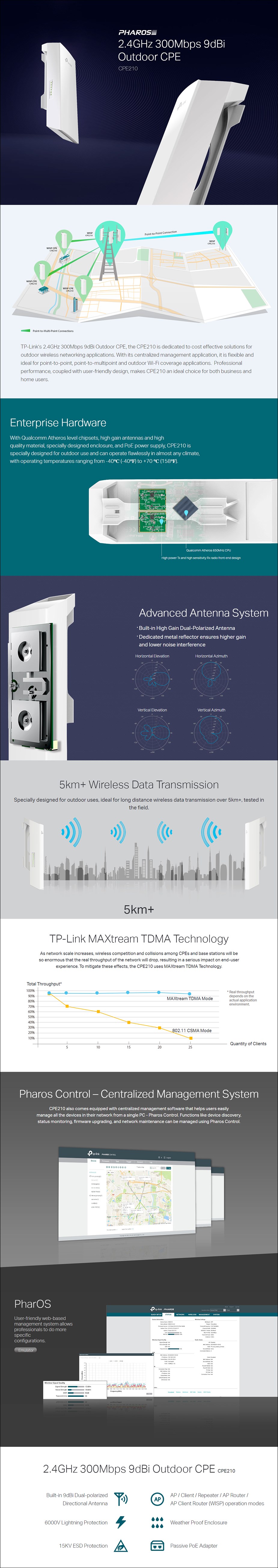 TP-Link CPE210 2.4GHz 300Mbps 9dBi Outdoor CPE - Overview 1