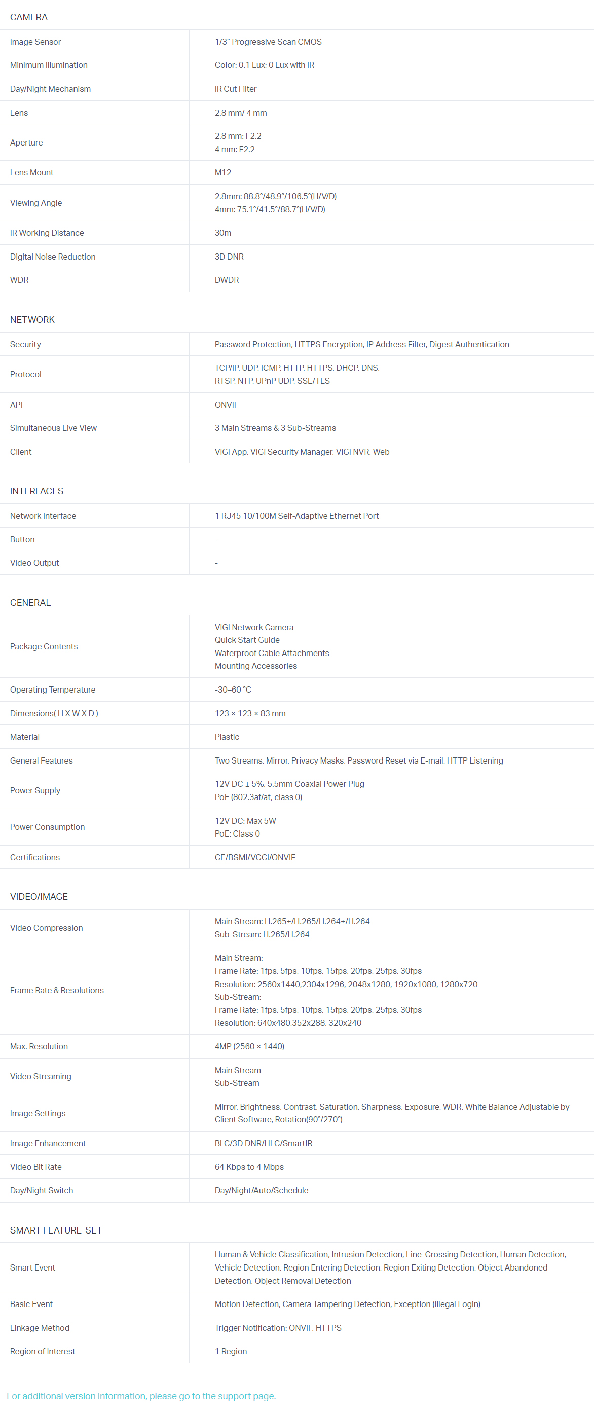 • 4MP Super-High Definition: The VIGI C440I camera comes with 4MP — more than enough pixels to pick up some of the more discrete details.