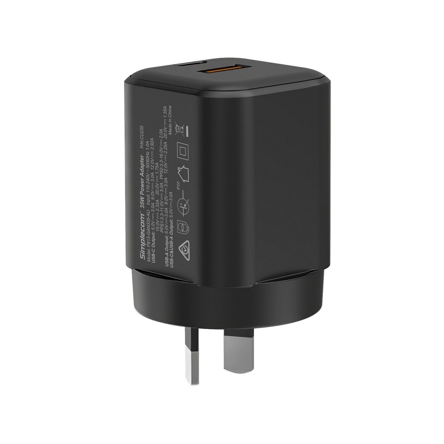 Simplecom CU235 Dual Port PD 35W Fast Wall Charger USB-C + USB-A for Phone Tablet