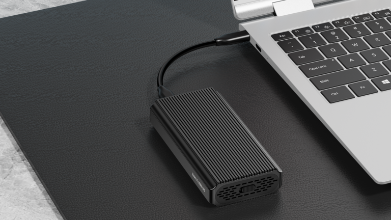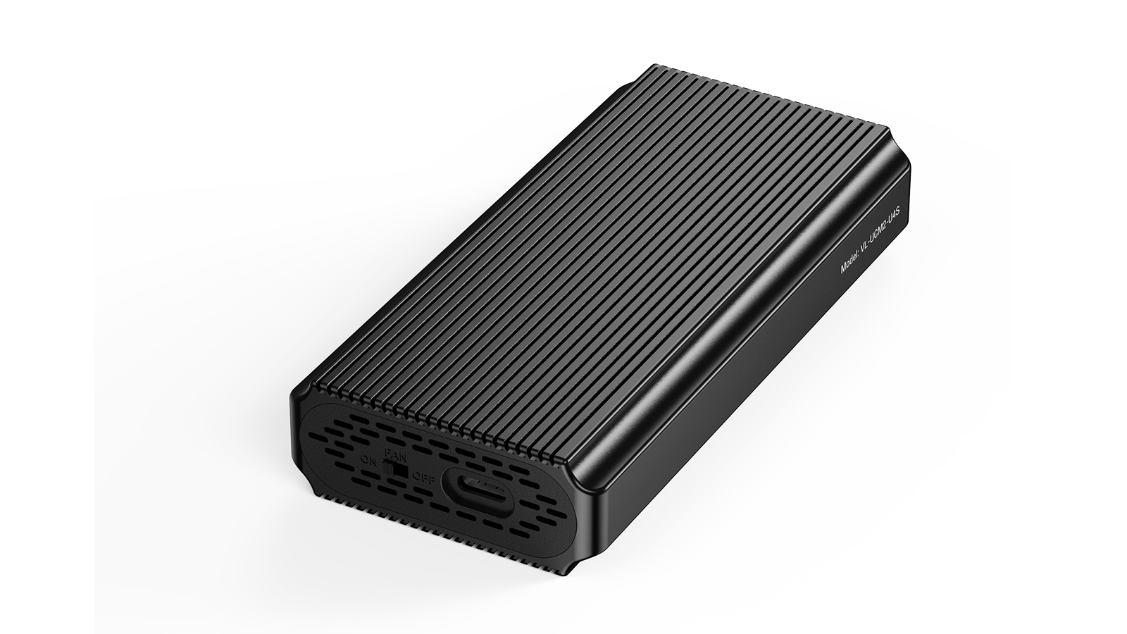 This USB4 40Gbps M.2 NVMe enclosure allows you to transform your NVMe M.2 SSD into a super-fast pocket drive which allows you to copy and transfer data in no time. Capable of read and write speeds up to 40Gbps when connected to an USB4 type C Port. Pocket-sized enclosure for PCIe based NVMe SSD is specially designed for mobility, with an ultra-portable design that fits easily into your laptop bag. Enjoy top of the line heat dissipation maximized by the aluminum case and conveniently connect with compatible USB-C hosts.