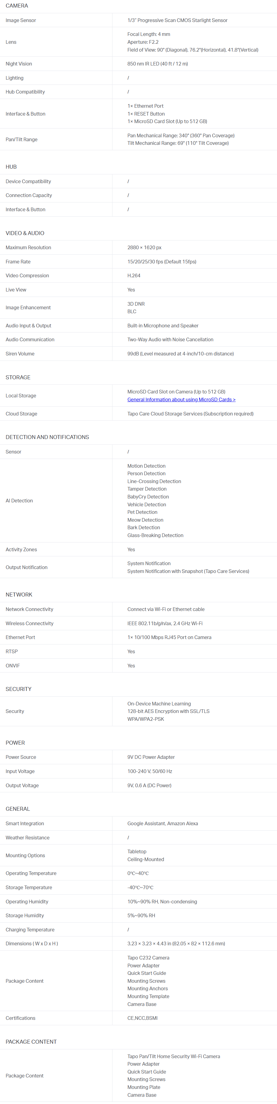 | Model # | Tapo C232 |