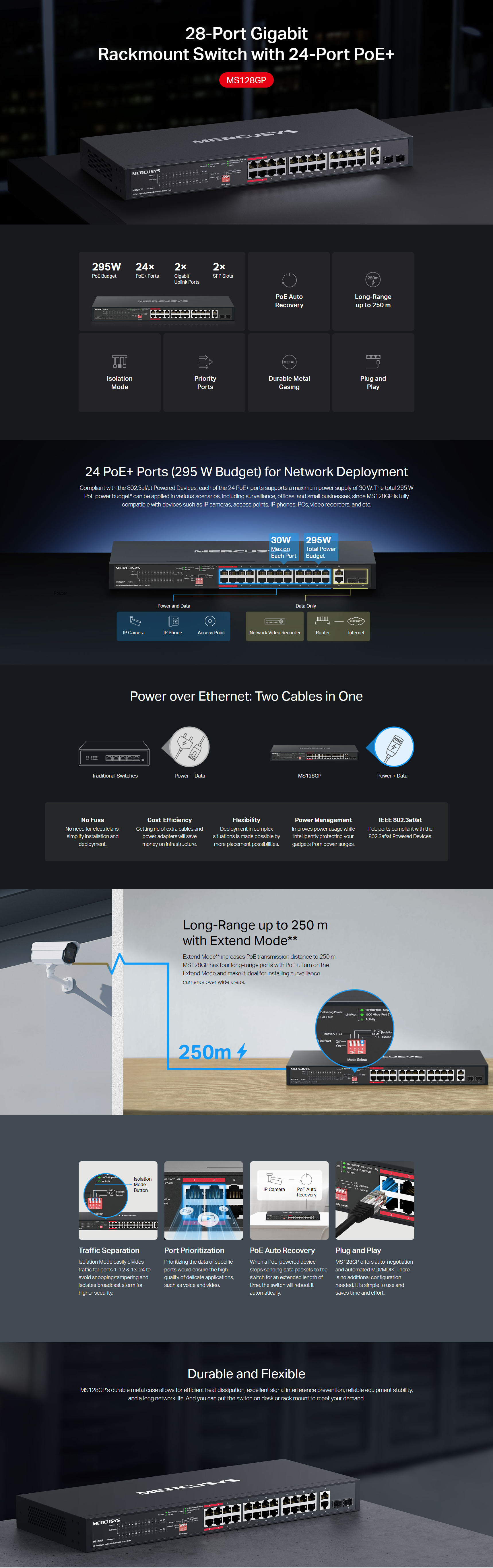 Mercusys MS128GP 28-Port Gigabit Rackmount Switch with 24-Port PoE+