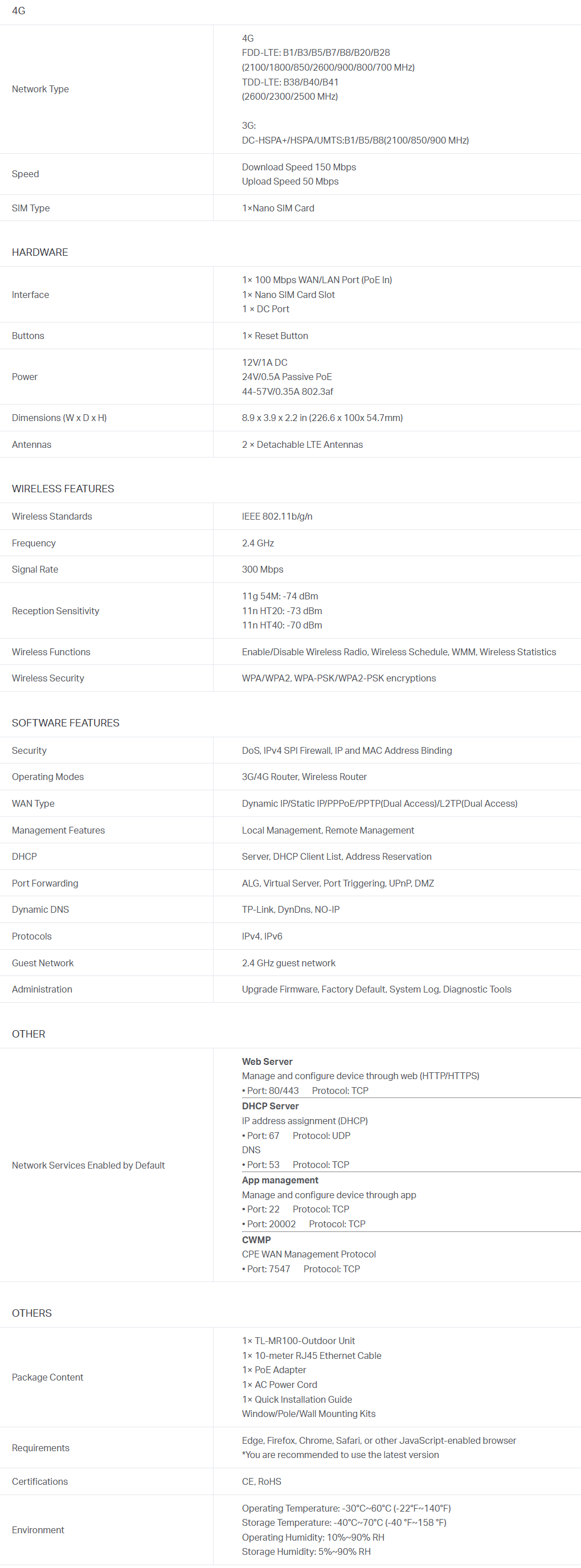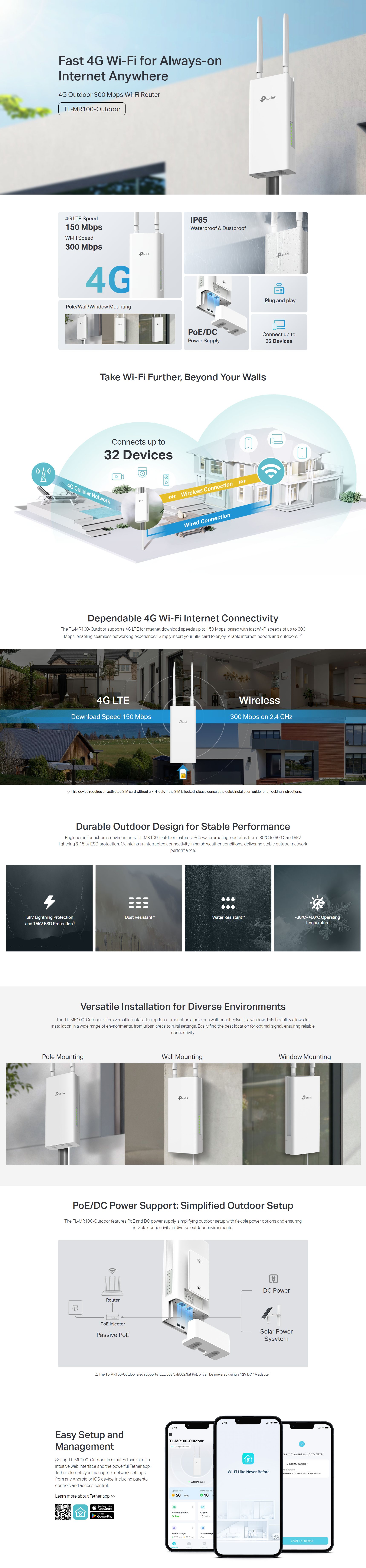 TP-Link TL-MR100-Outdoor 4G 300 Mbps Wi-Fi Outdoor Router