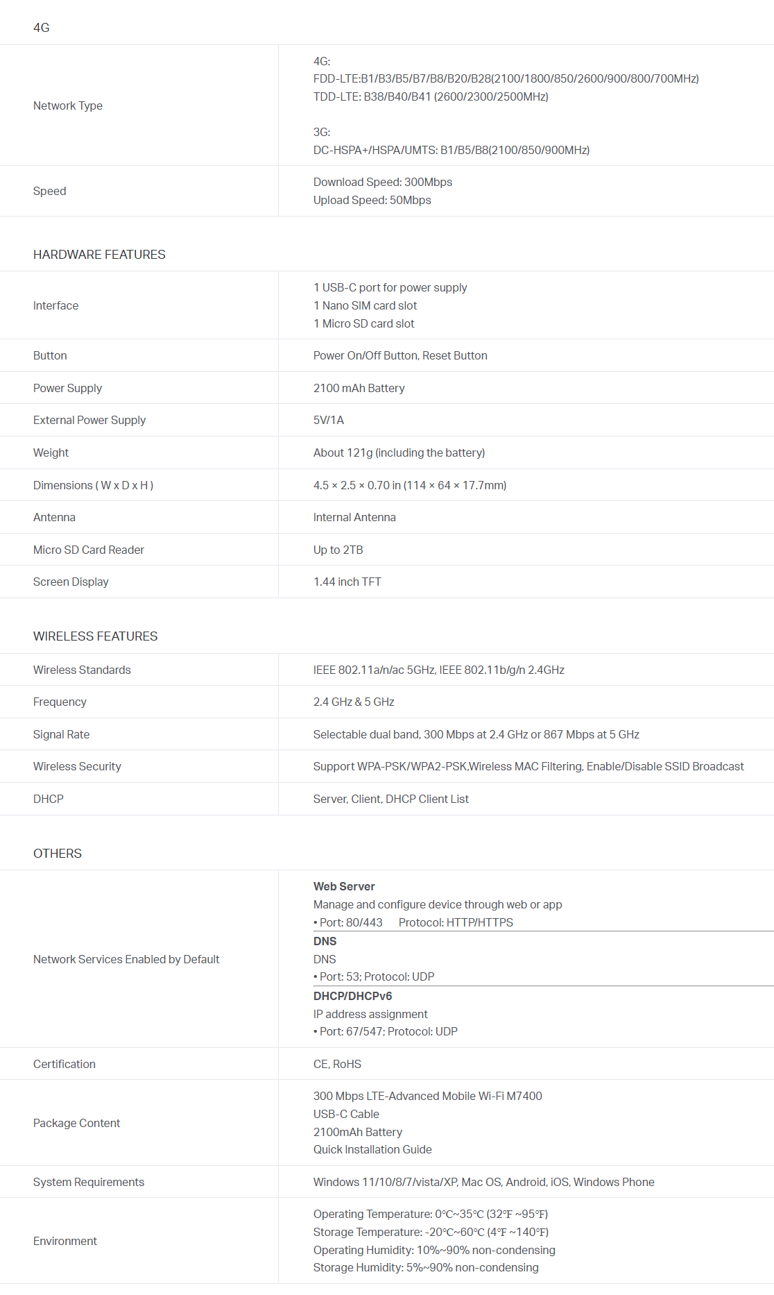 TP-Link M7400 300 Mbps LTE-Advanced Mobile Wi-Fi