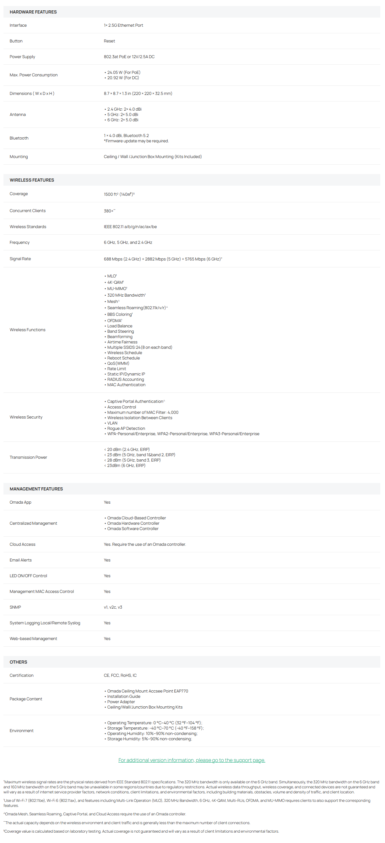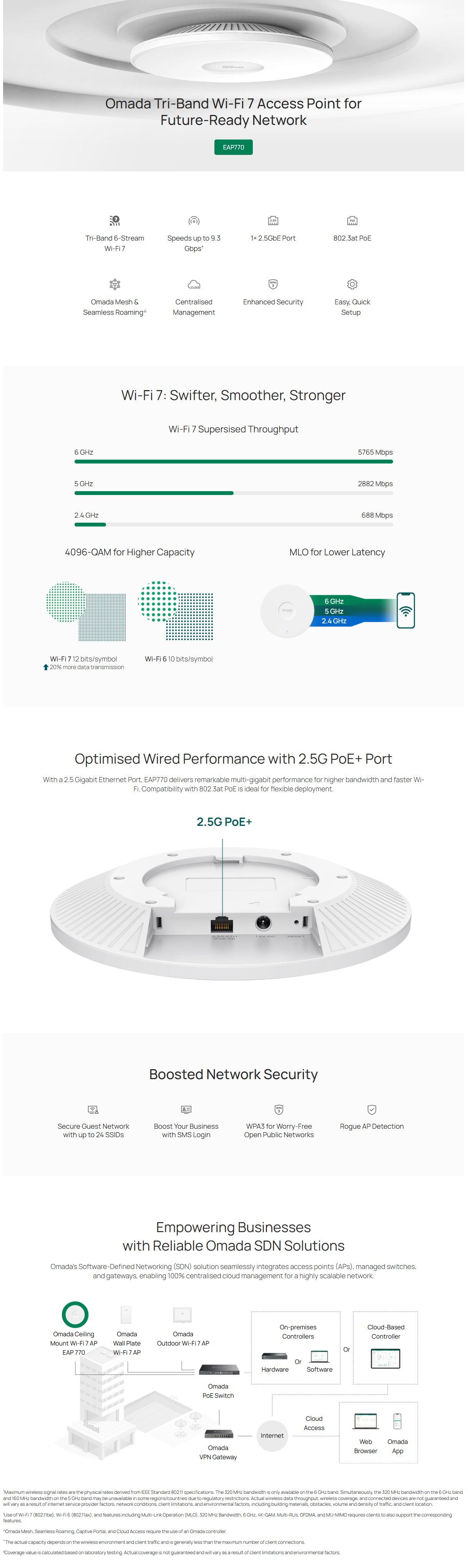 TP-Link EAP770 BE9300 Ceiling Mount Tri-Band Wi-Fi 7 Access Point