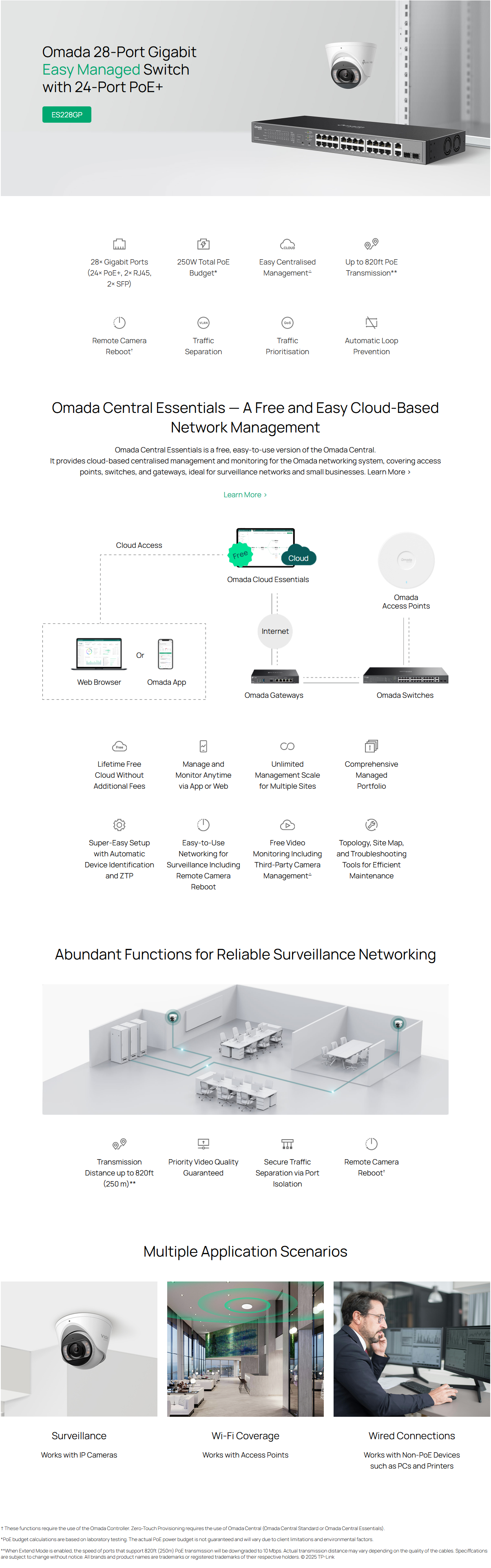 • Up to 820ft PoE**, Remote Camera Reboot†, QoS, and Port Isolation for reliable surveillance networking