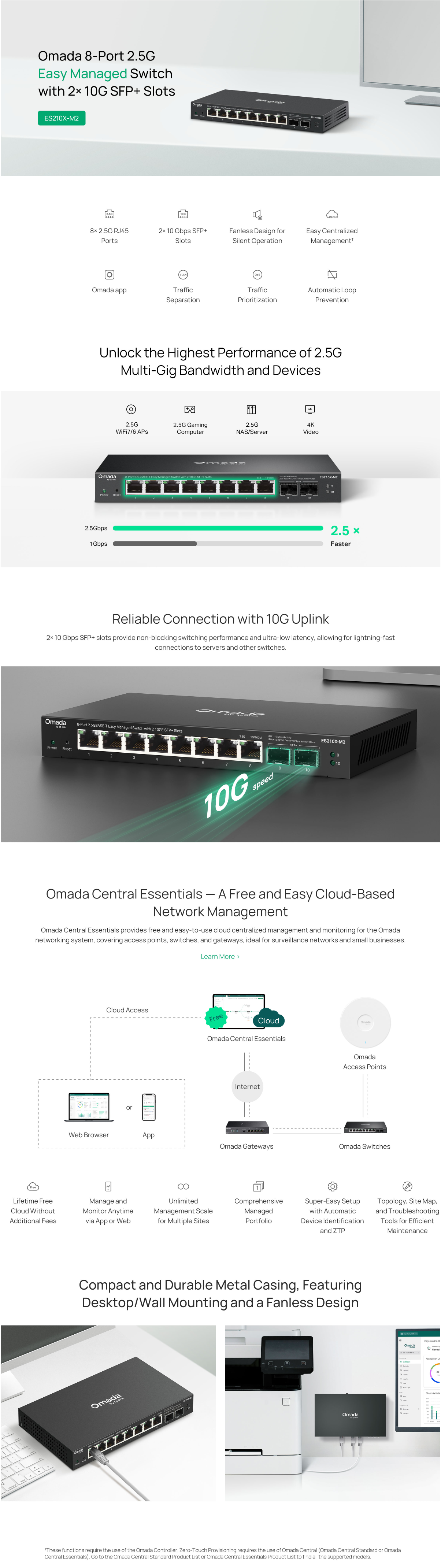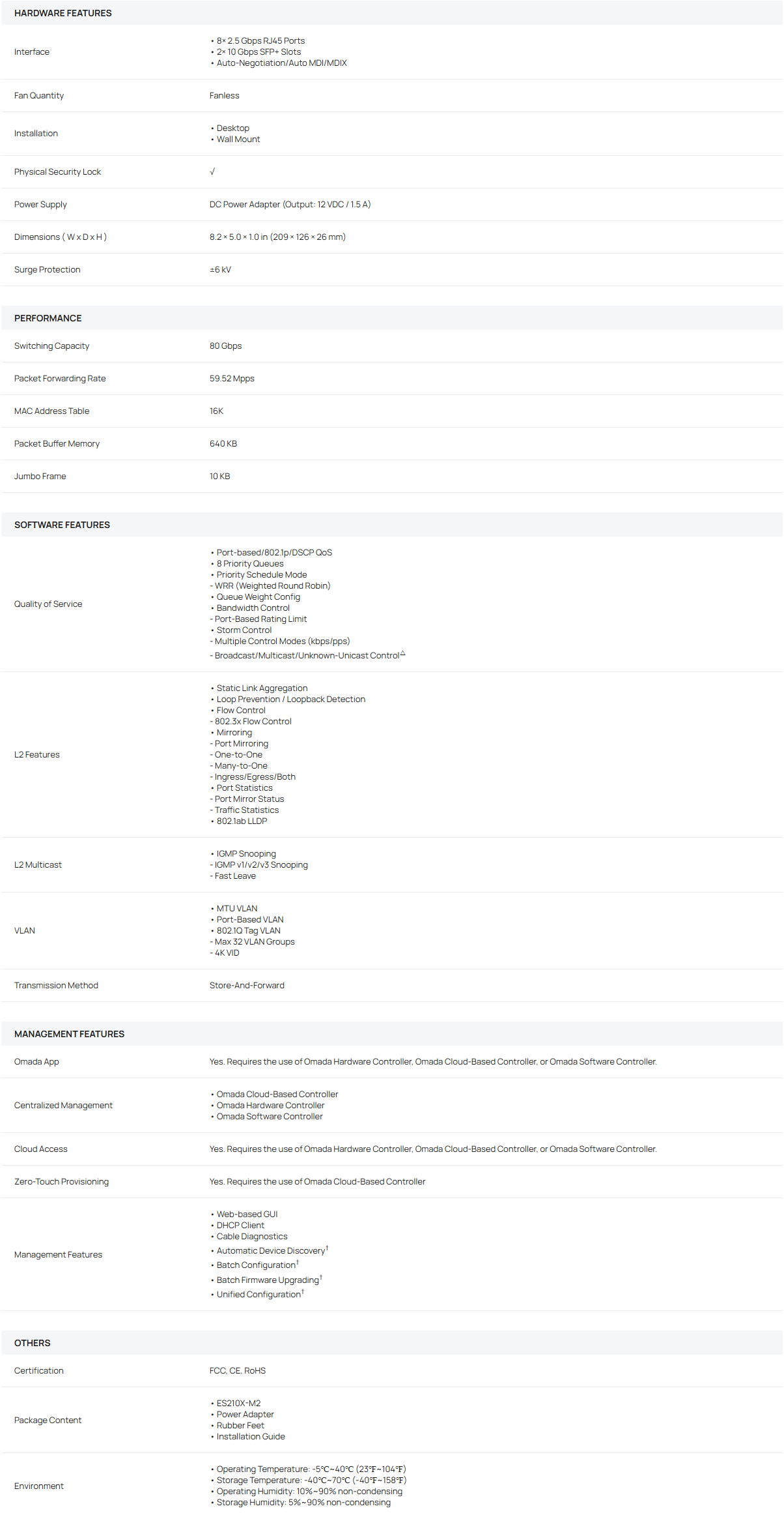 TP-Link ES210X-M2 Omada 8-Port 2.5G Easy Managed Switch with 2 10GE SFP+ Slots