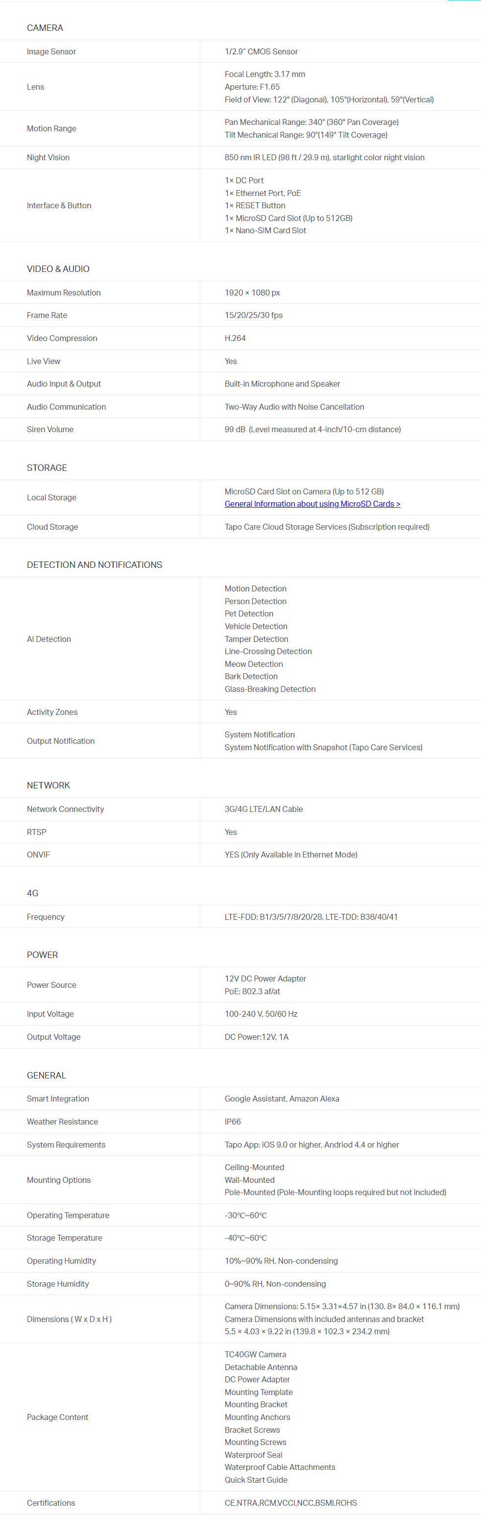 TP-Link TC40GW Outdoor Pan/Tilt 4G LTE Camera