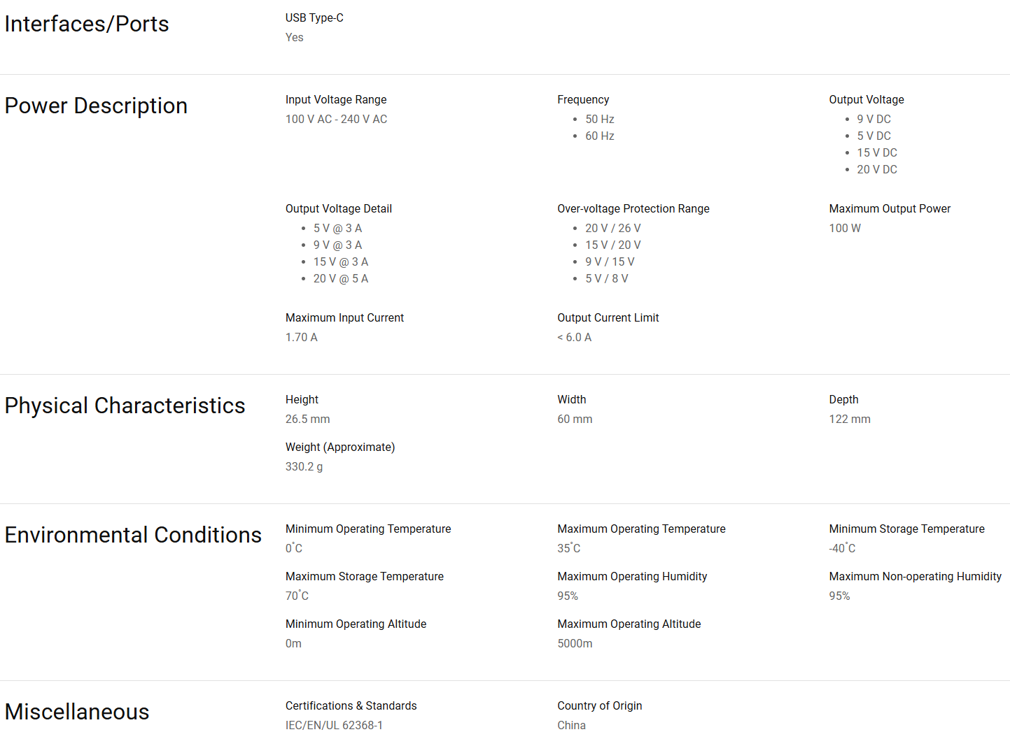 Dell 100W USB-C PECOS-Like AC Adapter with PowerCord - ANZ 450-BFVR