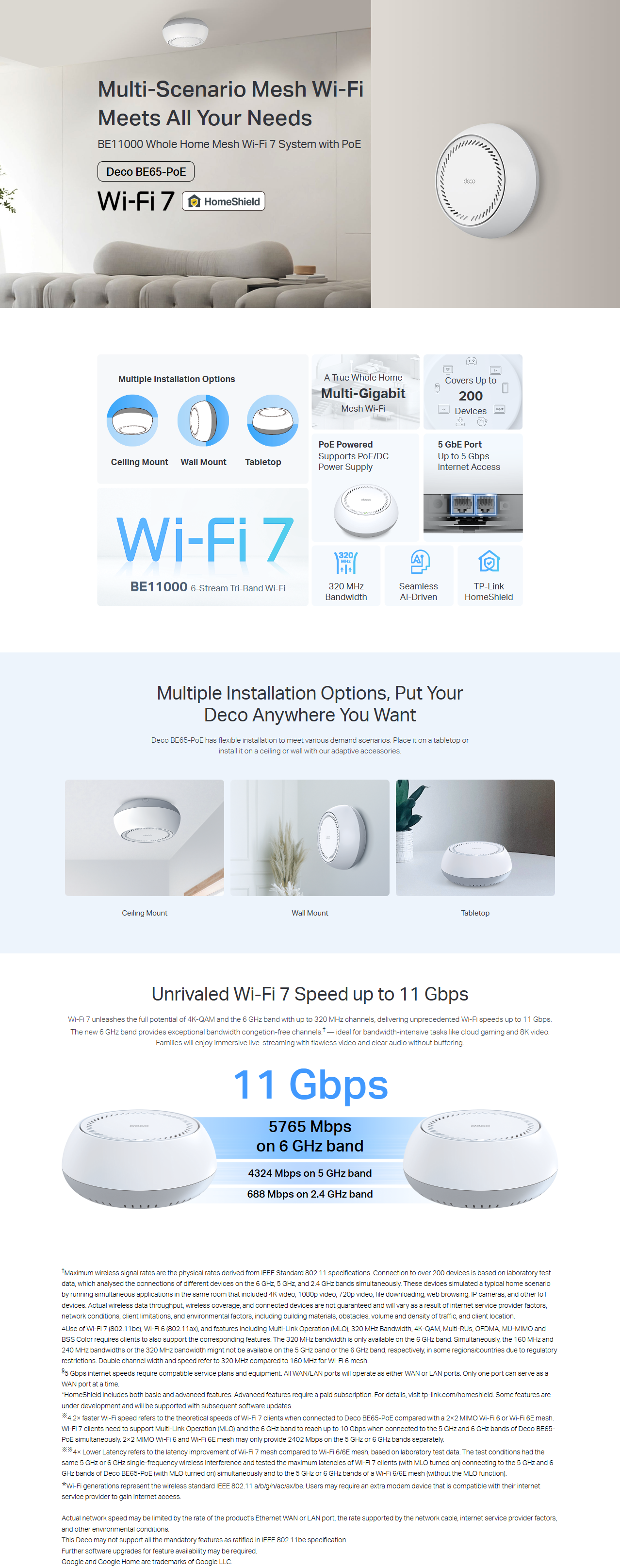 TP-Link Deco BE65-PoE(3-pack) BE11000 Whole Home Mesh Wi-Fi 7 System with PoE