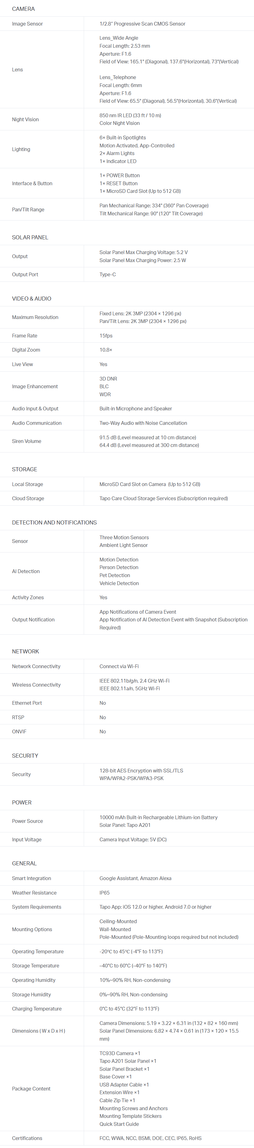 - One Setup is All It Takes – Just 1 hour of sunlight powers the camera for a full day.§ The 10,000 mAh rechargeable backup battery lasts up to 4 months per charge, ensuring reliable operation even during extended cloudy periods.△