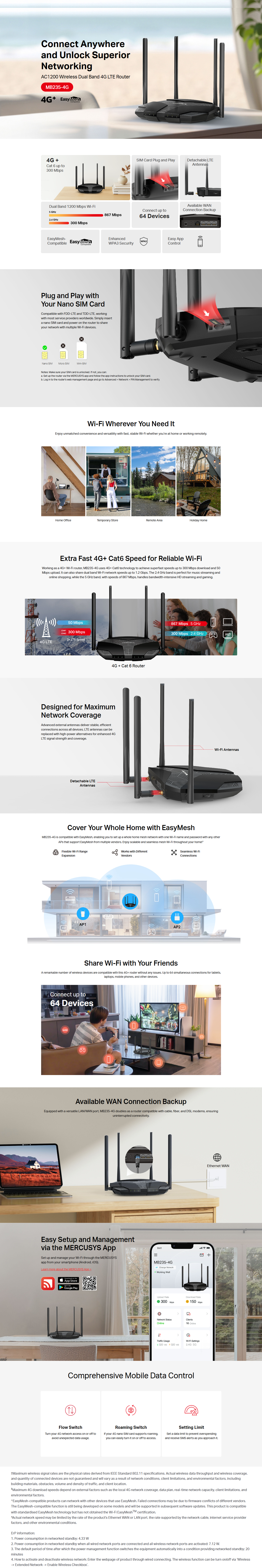 TP-Link MB235-4G 4G+ Cat6 AC1200 Wireless Dual Band Gigabit Router