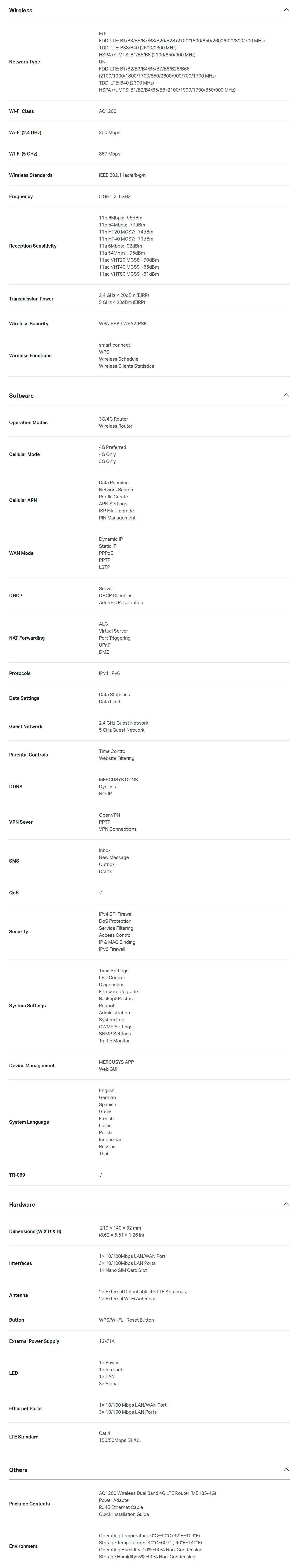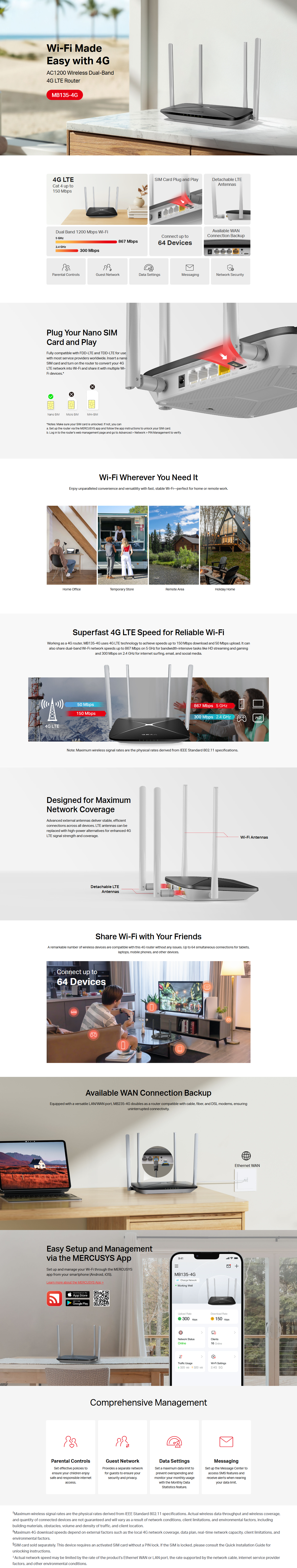• 4G network – Share internet access with up to 64 Wi-Fi devices and enjoy download speeds of up to 150 Mbps